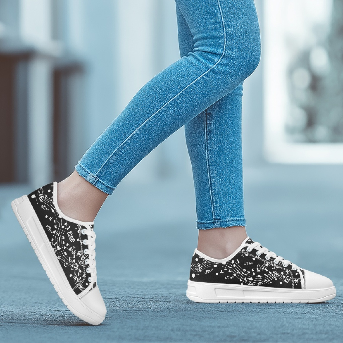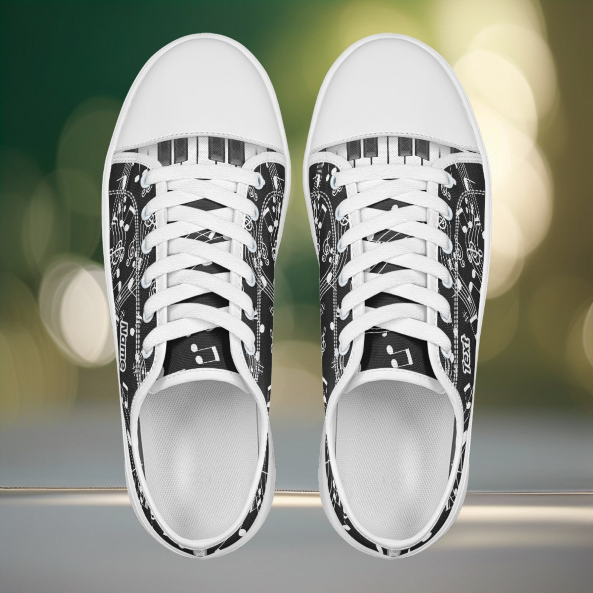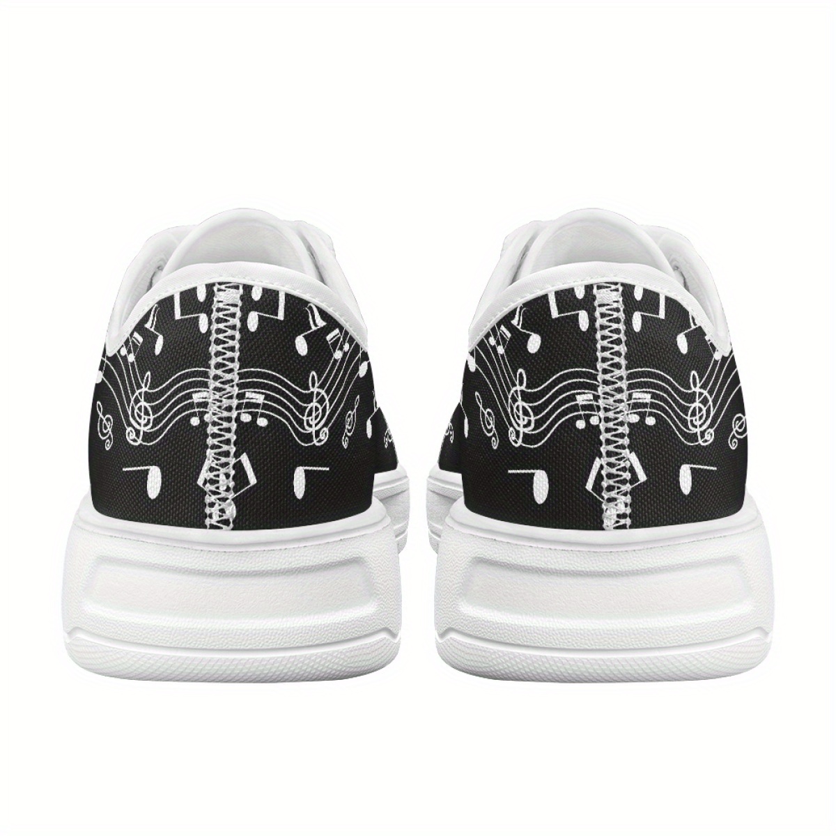 Customizable Black & White Musical Note Canvas Sneakers – Lightweight, Breathable Walking Shoes with Personalized Name Option – Perfect Gift for Music Teachers, Graduates, and Music Lovers, Teacher Appreciation Gift | Artistic Footwear | EVA Cushioned Sole, Fashion Sneakers