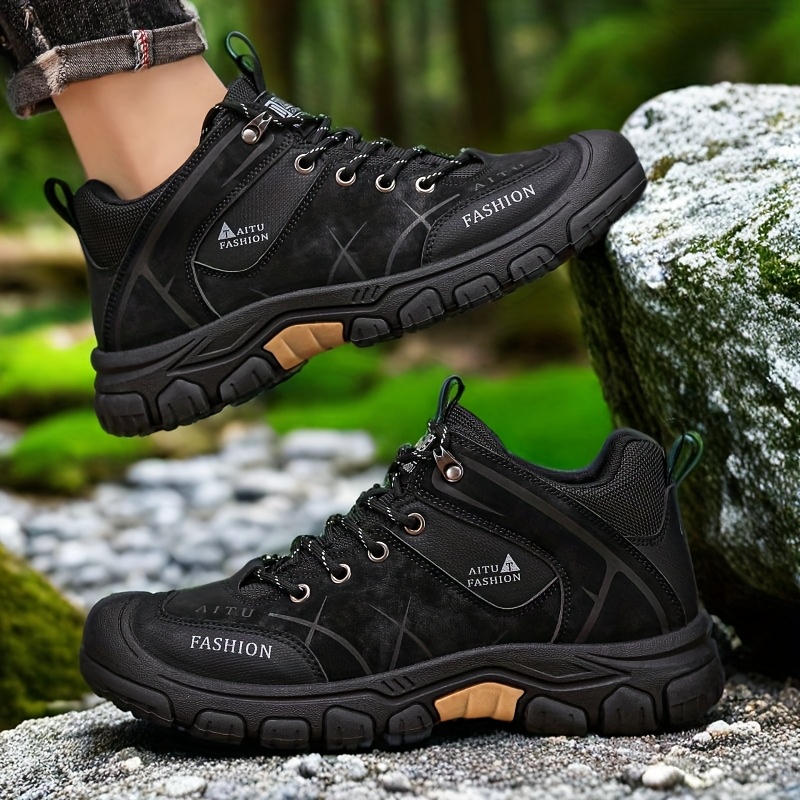 Men's All-Season Low-Top Hiking Boots - Heavy-Duty & Rugged Sole, All-Terrain Traction for Outdoor Trekking, Camping, Work & Casual Wear - Durable All-Weather Ankle Shoes (Solid Color)