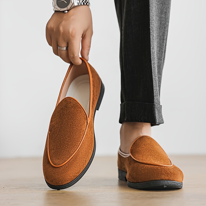 Men's Slip-On Loafers - Slip-On Closure, Soft -like Exterior, Cushioned PU Insole - Available Brown, Navy, Black, Beige, Tan, Grey - Formal & Casual Shoes for Office, Everyday, Semi-Formal Events - Easy-Clean Men's Footwear, Stylish Slipons, Durable Slipon Sole
