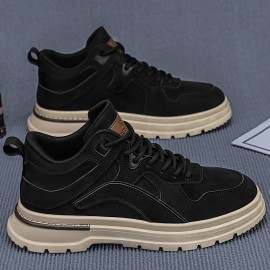 [Preppy Sports Sneakers] Casual Preppy Men's Sports Sneakers | All-Season Lace-Up Shoes with Faux Upper, Fabric Inner & PVC Sole | Round Toe Low Top for Daily Wear