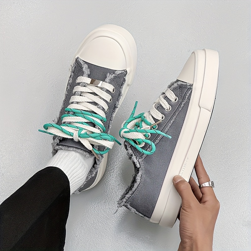 Men's Low-Top Canvas Skate Shoes - Black & White with Yellow Laces, Breathable Fabric Lining & Durable Rubber Sole, Lace-Up Round Toe Casual Sneakers for Streetwear, Sports, Daily Wear - All-Season Comfort