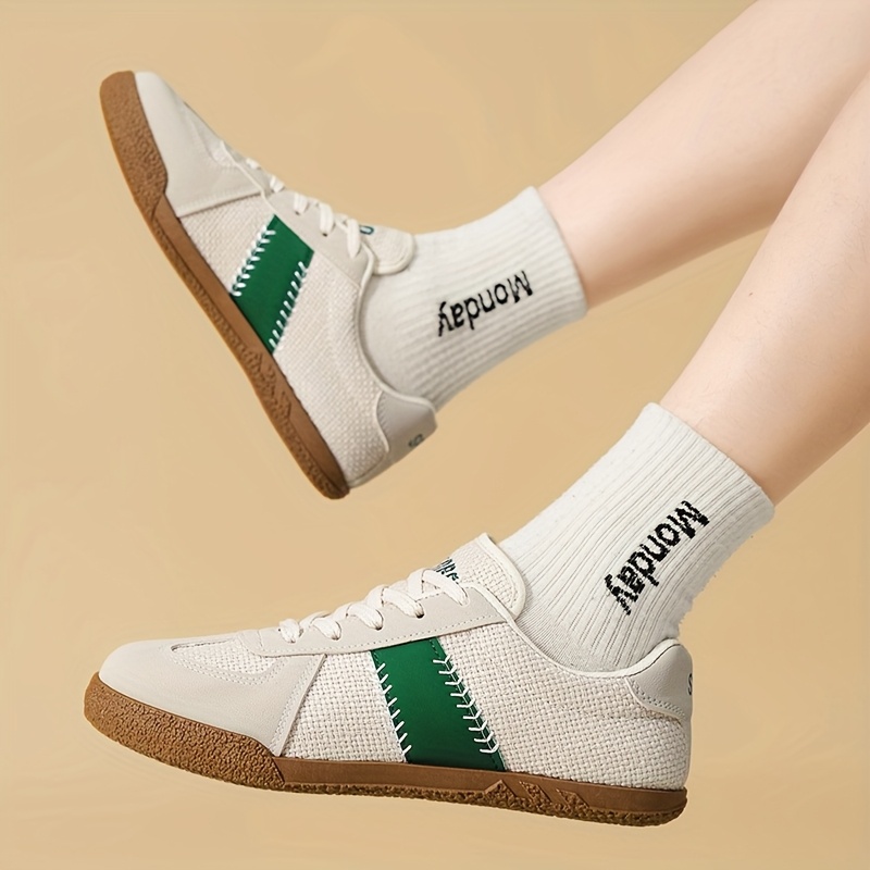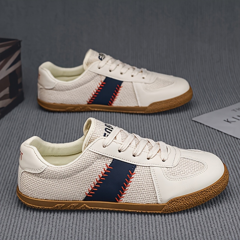 Men's Summer Casual Sneakers - Breathable Lightweight Low-Top Shoes with White & Brown Colorway, Fabric Upper & Rubber Sole for Sports, Vacation, Casual Attire, Sports Footwear | Street Style Shoes | Comfortable Insole