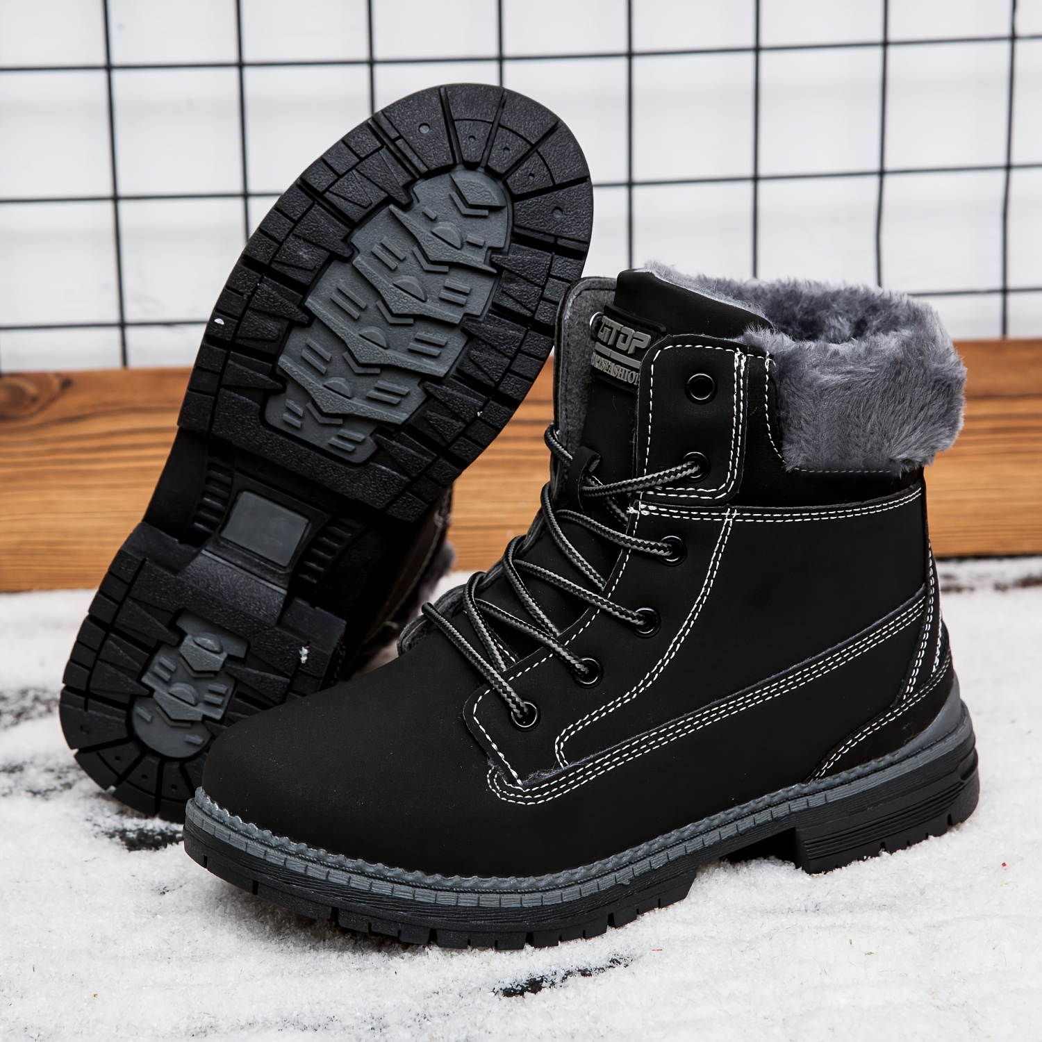 Women's Winter Boots with Collar & Thick PU Sole - Round Toe Snow Boots for Ice, Snow & Slush, Beige/Tan Lacing-Up Ankle Boots, Warm Round-Toe Traction Tires (No Calf Restriction) - Cold Weather Footwear