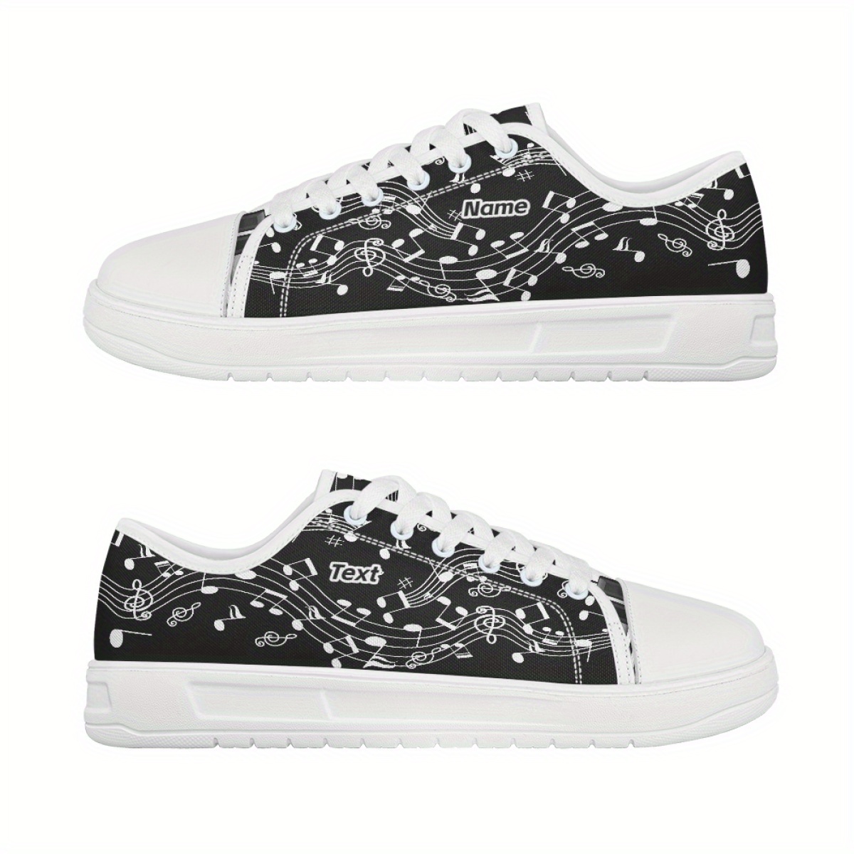 Customizable Black & White Musical Note Canvas Sneakers – Lightweight, Breathable Walking Shoes with Personalized Name Option – Perfect Gift for Music Teachers, Graduates, and Music Lovers, Teacher Appreciation Gift | Artistic Footwear | EVA Cushioned Sole, Fashion Sneakers