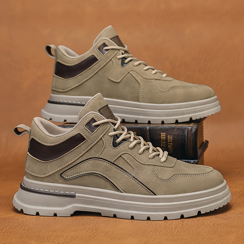 [Durable Work Boots] Durable & Easy-Clean Men's Plus Size Work Boots | All-Terrain Tactical Shoes with Lace-Up Closure, Non-Slip PVC Outsole, Cushioned Insole - Tan/Beige Rugged Boots for Hiking, Construction, Everyday - Big & Tall Men, Hiking Footwear, Sleek Boot Design, Fabric Lined Interior