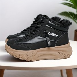 [Height-Increasing Lift Shoes] Women's Height-Increasing Lift Shoes | Thick Platform Sneakers with Synthetic Faux Fur-like Texture | Black/White/Grey/Navy | All-Season Comfort, Arch & Stability | Solid Color Glossy/Textured Design | Rubber Sole | Multi-Color Options for Height Boost & Casual/Professional Wear | Ideal Gift for Women (Birthday/Anniversary) | Year-Round Wear | Minimalist & Chic Style