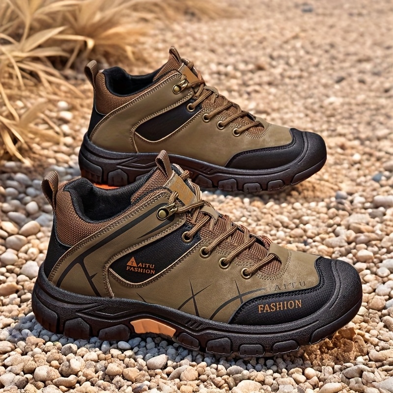 Men's All-Season Low-Top Hiking Boots - Heavy-Duty & Rugged Sole, All-Terrain Traction for Outdoor Trekking, Camping, Work & Casual Wear - Durable All-Weather Ankle Shoes (Solid Color)