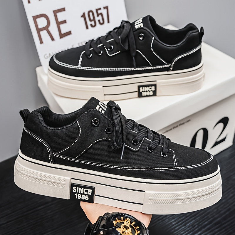 Men's Retro 1996 Letter Print Thick Platform Sneakers - Low-Top Lace-Up Casual Shoes with Breathable Fabric Upper & Durable PU Sole for Casual Attire, Sleek Shoe Design, Comfortable Shoe Fit, Urban Fashion, Vintage Style, Lightweight Construction, Fashion Enthusiasts