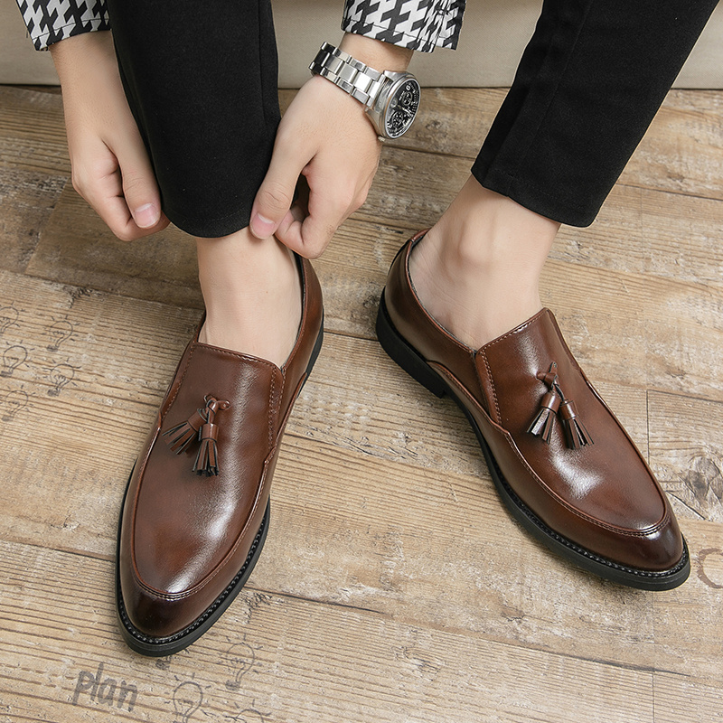 Men'S Slip-On Oxford Shoes - Low-Top Formal & Casual Dress Shoes with Cushioned Insole, Brown/ - All-Season Wedding, Office