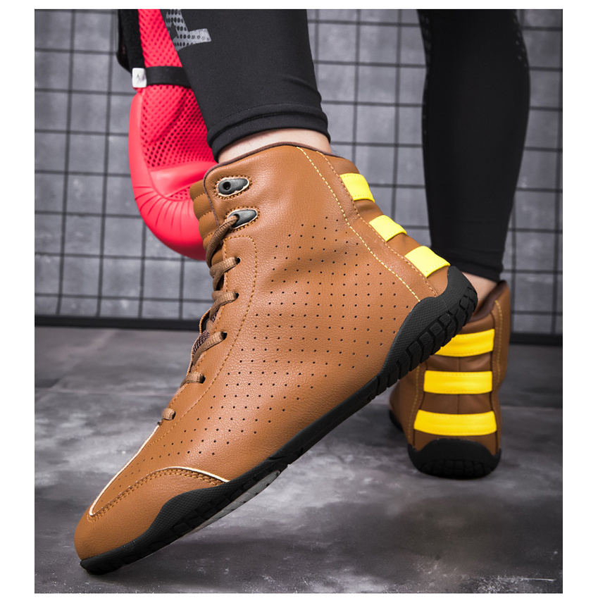 Men's Boxing & Wrestling Shoes - Lightweight Cushioned Sole, Breathable PU/Fabric Upper, Lace-Up Closure - Gym, Training, Streetwear - All-Season Athletic Footwear - Compatible with Gym, Combat Sports, Casual Attire - Durable Construction, Boxing Shoes, Combat Sports Gear, Sporty Shoe Design, Flexible Interior Lining
