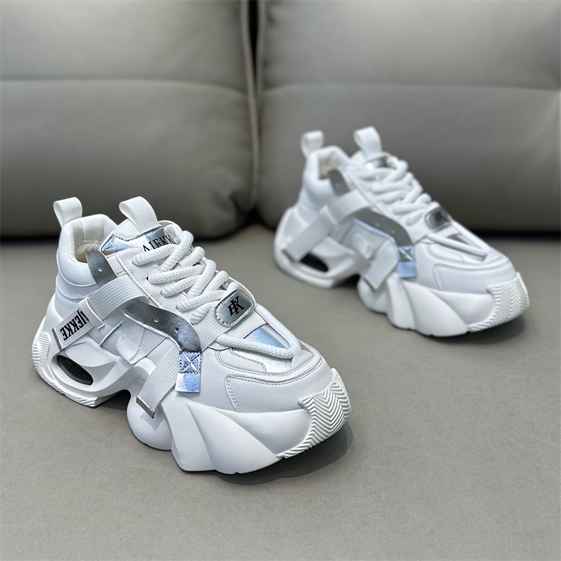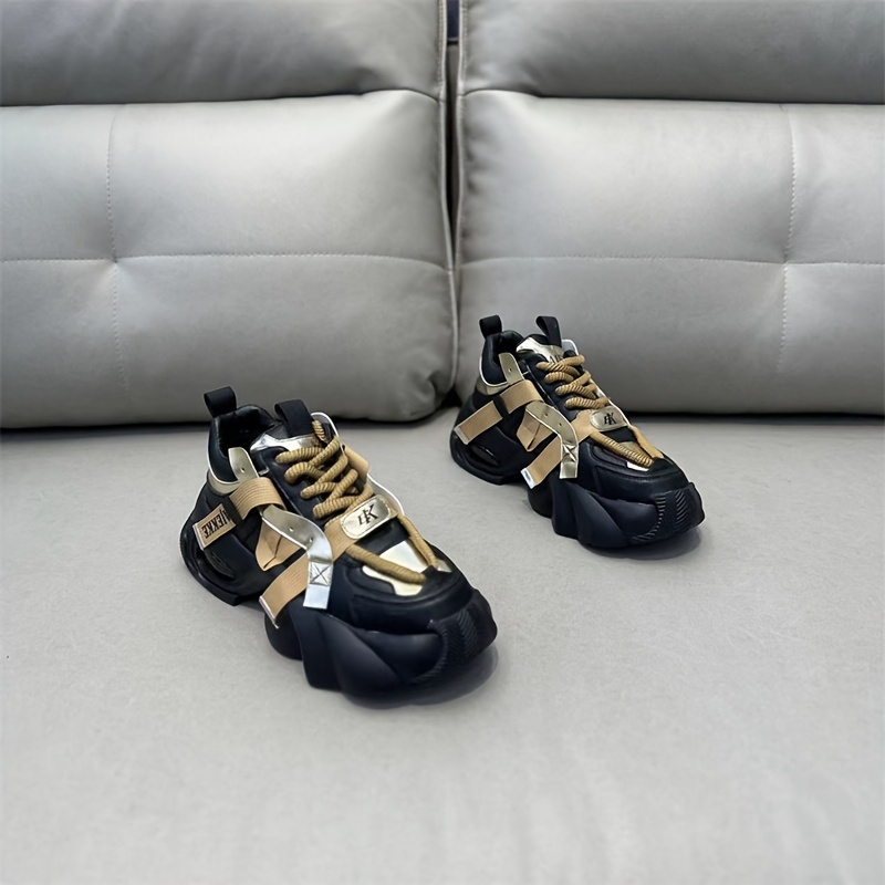 Men'S Stylish Black & White Chunky Platform Sneakers with Lace-Up Closure, Thick Cushioned Sole, and Bold "JACKKE" Branding - Versatile Low-Top Casual Shoes for Casual Attire, Chunky Shoes, Fabric Lined Interior