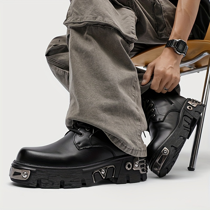 Men'S Vintage Outdoor Boots - Adjustable Lace-Up Ankle Support, Durable Synthetic Upper & Rubber Sole, All-Season Comfort for Hiking, Streetwear & Casual Outfits, Hiking Boots, Hiking Streetwear, Trendy Midboot, Secure Zipper Closure
