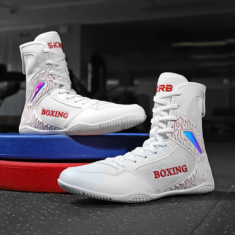 Professional Wrestling & Boxing Shoes - High-Top Training Shoes with Non-Slip Rubber Sole, Breathable Mesh & Synthetic Upper, Durable All-Season Design for Men & Women, Combat Sports Gear, Combat Sports Footwear, Sleek Sporty Look