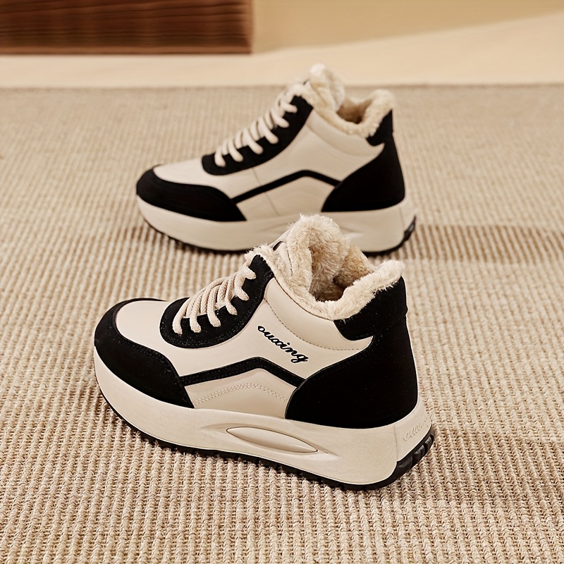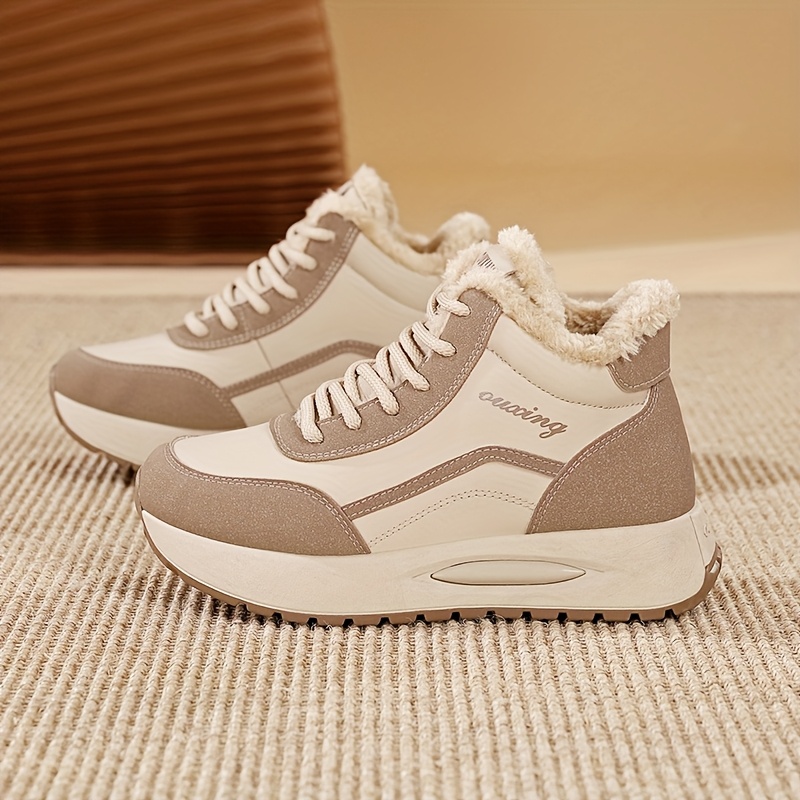 Women'S Lightweight High-Top Sneakers - & Brown Winter Shoes with Cushioned TPU Sole, Lace-Up Closure, Synthetic Cover Upper - All-Season Everyday & Formal Shoes for, Ladies - Easy-clean Minimalist Design, Ladies Sneakers, Casual Footwear