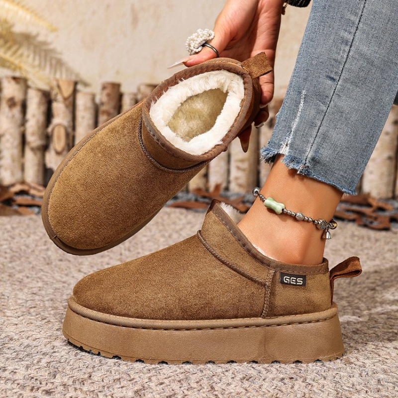 Women'S Winter Snow Boots - Slip-On Thick Platform Sole, Warm Fleece & Non-Slip Rubber Outsole, Elegant Low-Top Design for Cold Weather, Home & Outdoor - Multi-color Options (, Brown, Grey, Pink, Green, Purple, Orange, Red, Navy, Dark Brown